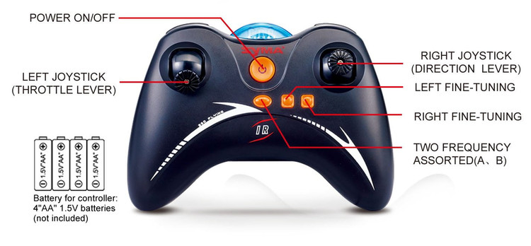 این هلیکوپتر کنترلی از یک دستگاه کنترل از راه دور با تکنولوژی اینفرارد بهره می برد که برای کاربرد داخل خانه بسیار کاربردی و کافی می باشد و برد ۱۵ متری آن نیز با در نظر گرفتن این که یک اسباب بازی خانگی است ، کافی و مناسب ارزیابی می گردد .